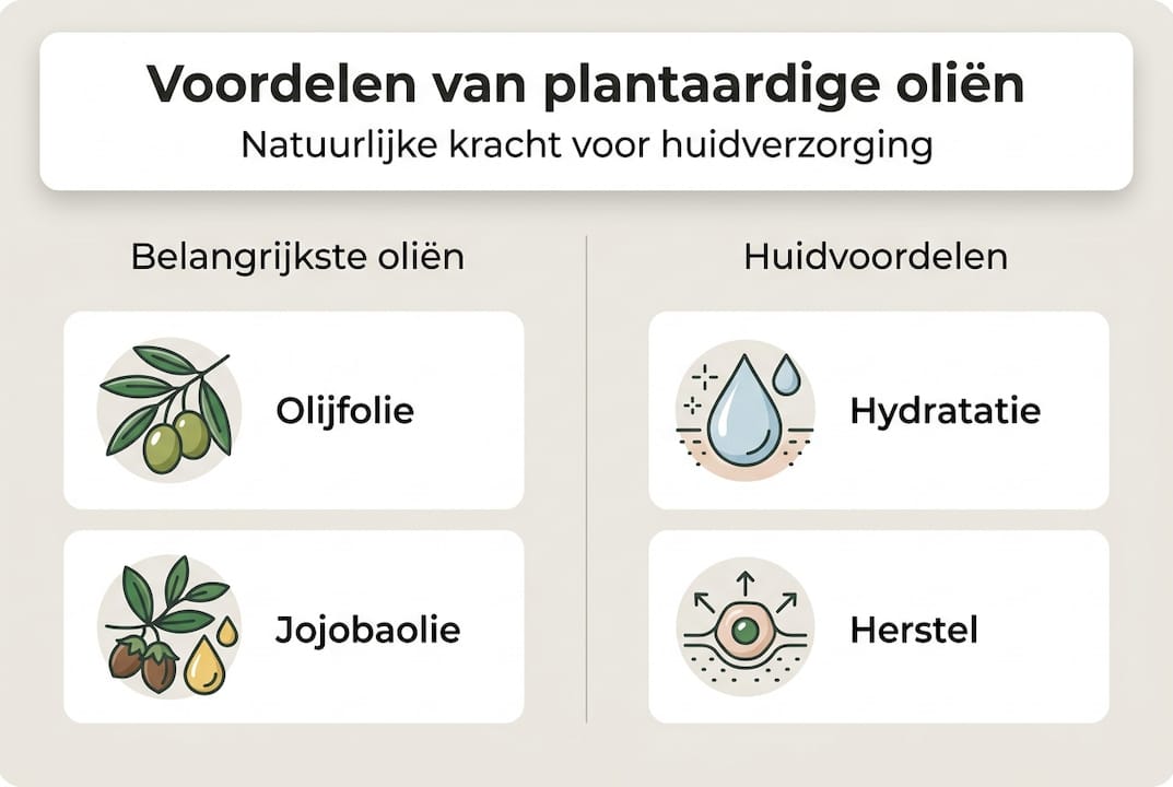 Plantaardige oliën bieden biocompatibele vetzuren die de huid herkent en gebruikt voor barrièreherstel. Synthetische ingrediënten zoals dimethicon creëren alleen een occlusieve laag zonder actief herstel. Voor langetermijn huidgezondheid zijn natuurlijke oliën superieur, mits correct bewaard en toegepast. Ze stimuleren de huid zichzelf te herstellen in plaats van alleen symptomen te maskeren.
